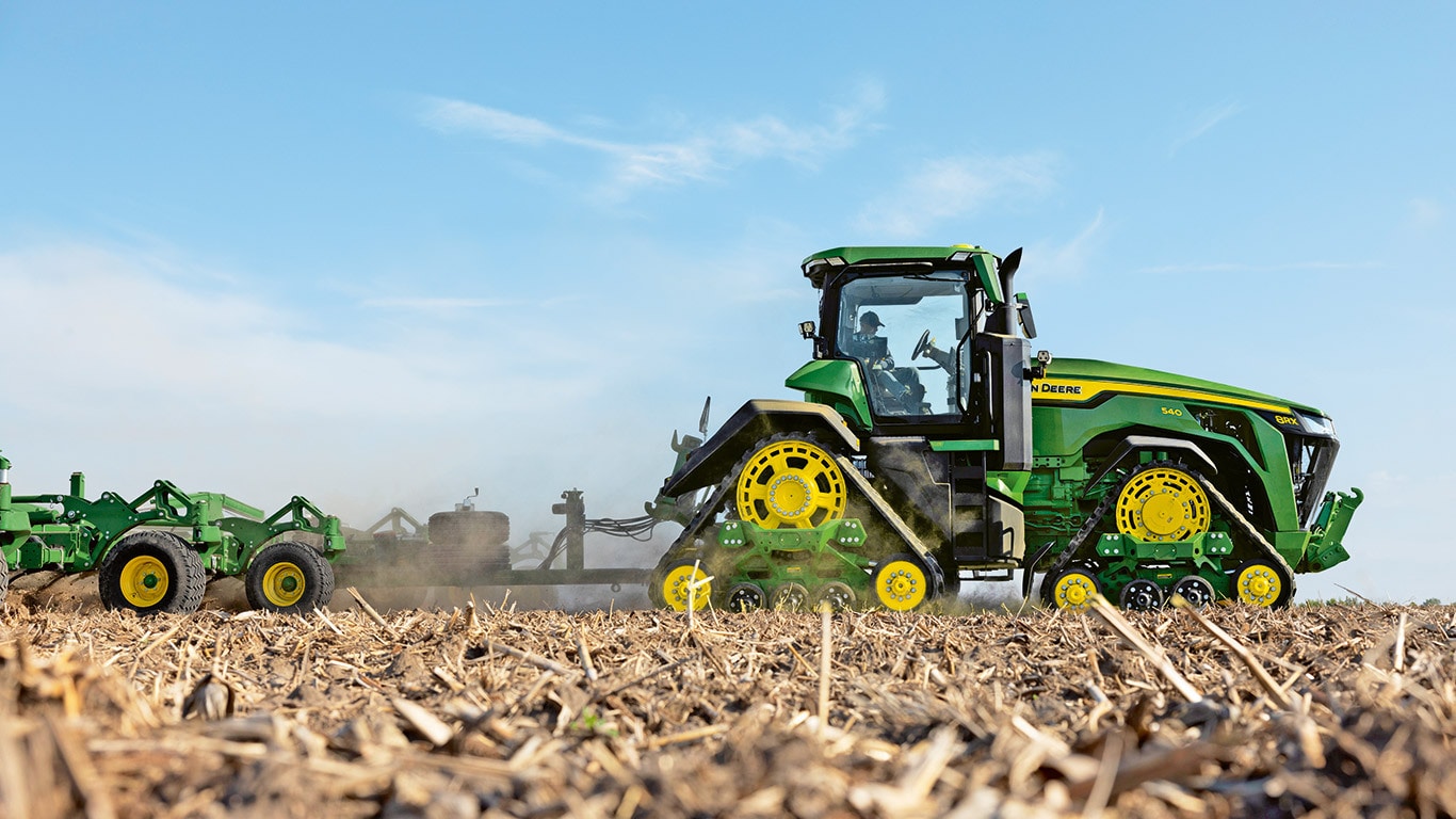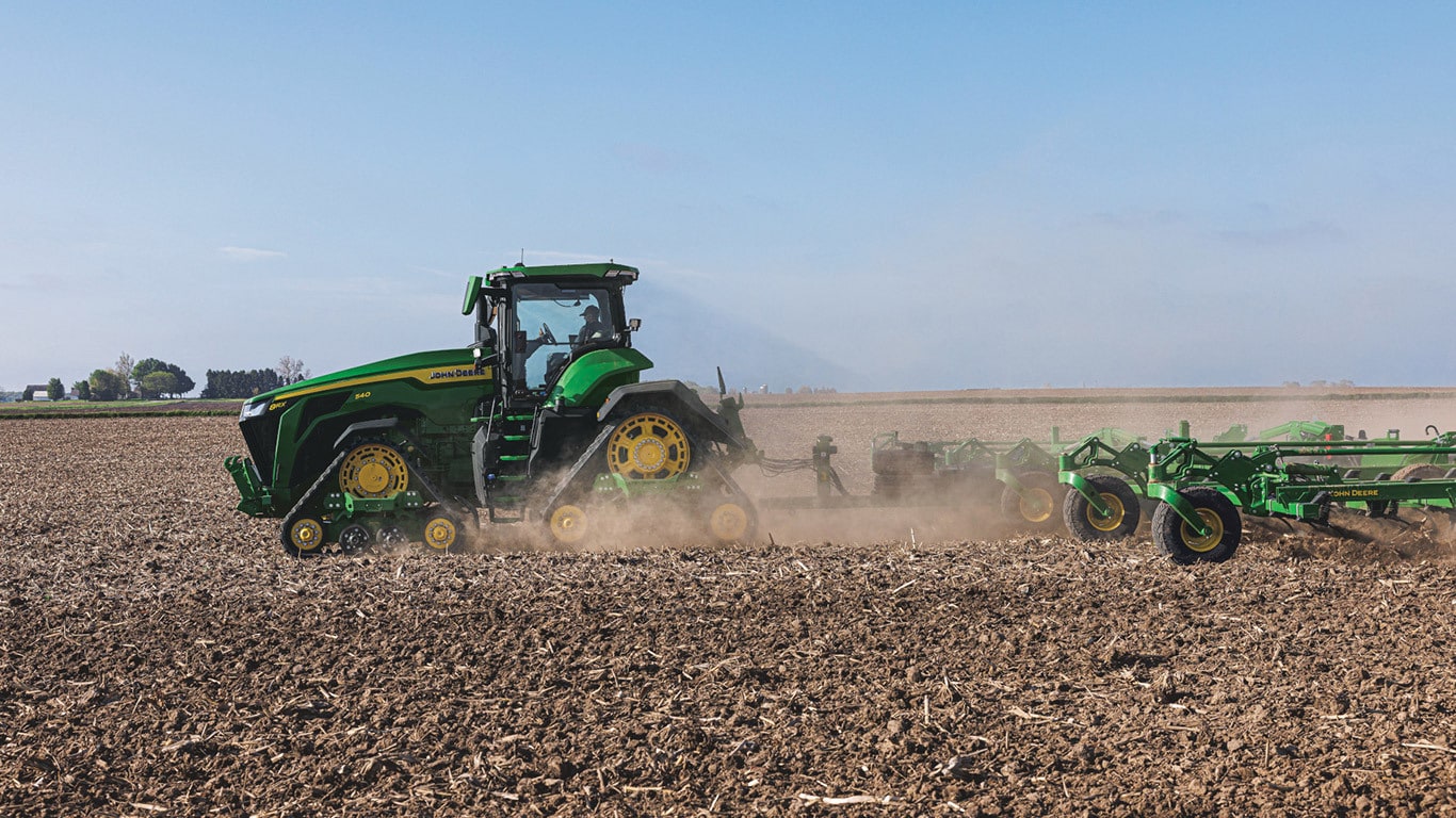 Nové traktory řady 8R s vysokým výkonem poskytují potřebný tažný výkon i pro ty nejnáročnější nářadí. Díky inteligentnímu řízení špičkového výkonu zajistí motor JD14 výkon 634 k přesně ve chvíli, kdy je to potřeba – pro maximální produktivitu za jakýchkoliv podmínek.. Unikátní převodovka eAutoPowr™ zajišťuje plynulé zrychlení a až o 8 % lepší přenos výkonu ve srovnání se standardními hydromechanickými bezstupňovými převodovkami*.